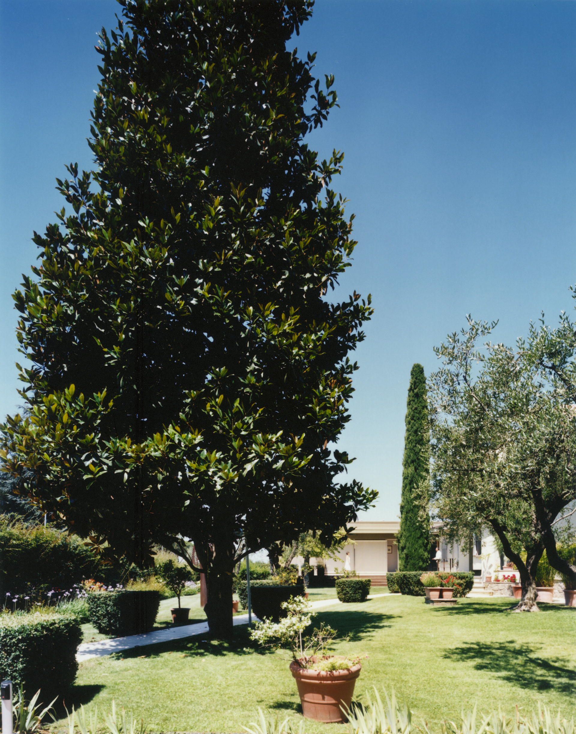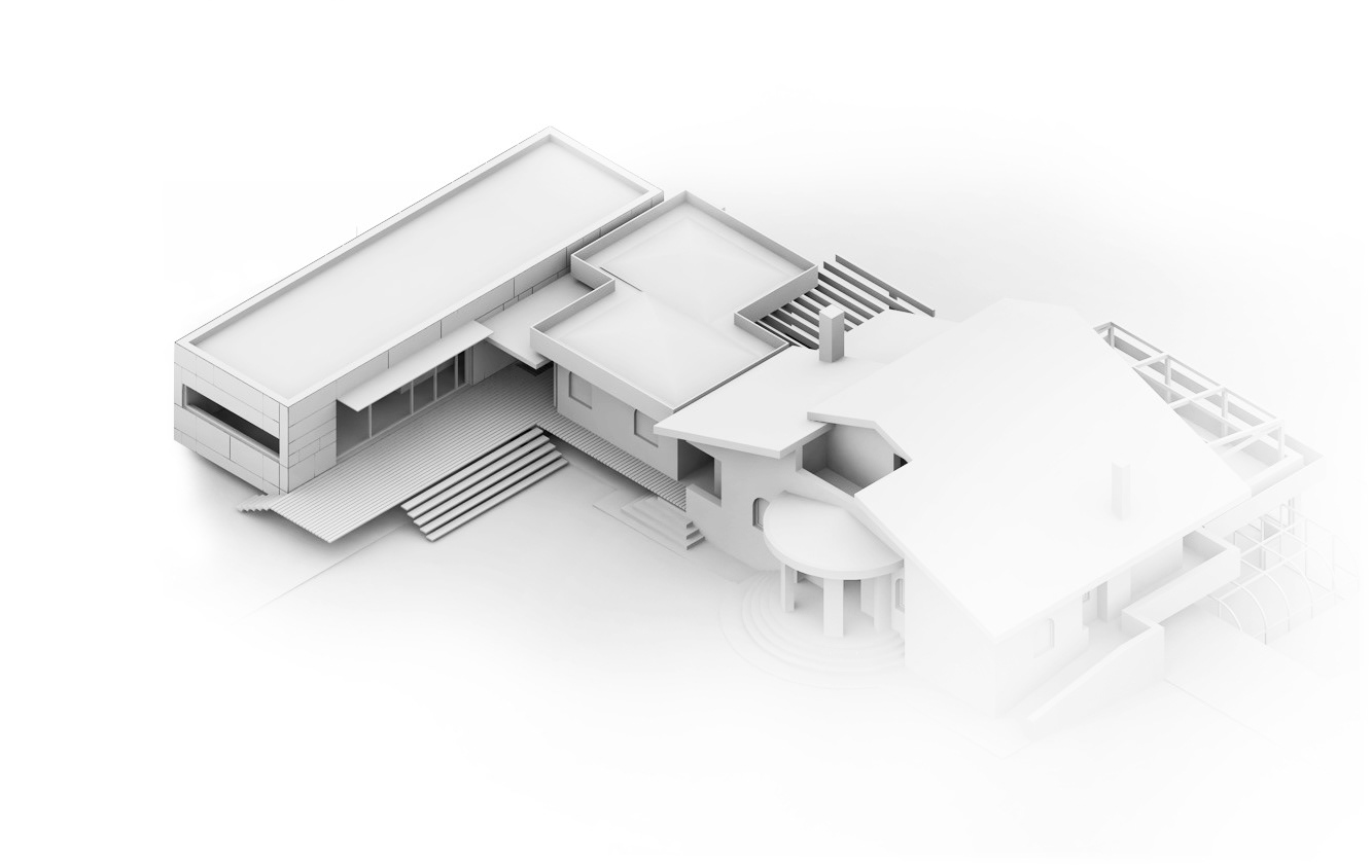 La casa si configura come un'appendice di ampliamento di un villino preesistente per ospitare la famiglia che cresce. Un'unità abitativa organizzata su un unico piano con basamento in parte interrato, adibito a deposito/garage. L'abitazione ha uno sviluppo longitudinale ed è stata pensata proprio per mantenere una sua autonomia rispetto alla casa patronale. Ma la zona giorno si apre completamente con una ampia superficie vetrata verso il villino e la terrazza sul grande prato diventa luogo d'incontro famigliare.
